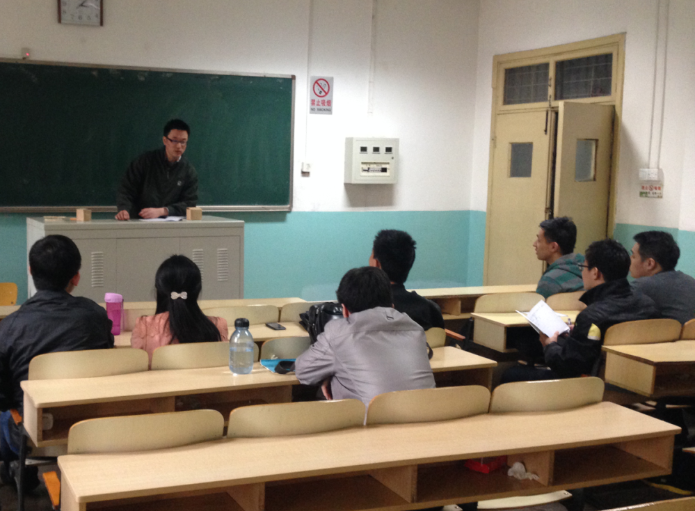 4月14日产学研项目的申报者聚集在教1-109讨论阶段工作的进展。太阳成集团tyc7111cc申请太阳成集团tyc7111cc城乡建设与管理产学研联合研究生培养项目13项,其中包括旧砌体建筑外套预制结构抗震加固施工技术研究、绿色建筑在北京地区推广中遇到的具体问题研究、火灾中及火灾后钢筋混凝土结构性能与灾损鉴定评估研究等。城乡建设与管理产学研联合研究生培养课题项目具有前瞻性,增强学生自主创新能力,深化课题研究领域。
