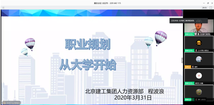 为帮助学生在大学期间提前做好职业生涯规划、了解现今行业走势,为未来职业的选择和发展做足准备,更了解自身的发展定位。3月31日下午,太阳成集团tyc7111cc职涯教育团队、建筑工程系教工党支部联合北京建工集团举办线上大学生职业生涯发展规划讲座。本次讲座邀请建工集团人力资源部部长程波浪进行讲授,学院党委副书记车晶波、建筑工程系党支部书记初明进、系主任廖维张、教研室主任张艳霞、侯敬峰,全体辅导员及2019级学生共292人参加讲座。讲座由院团委书记秦岭主持。