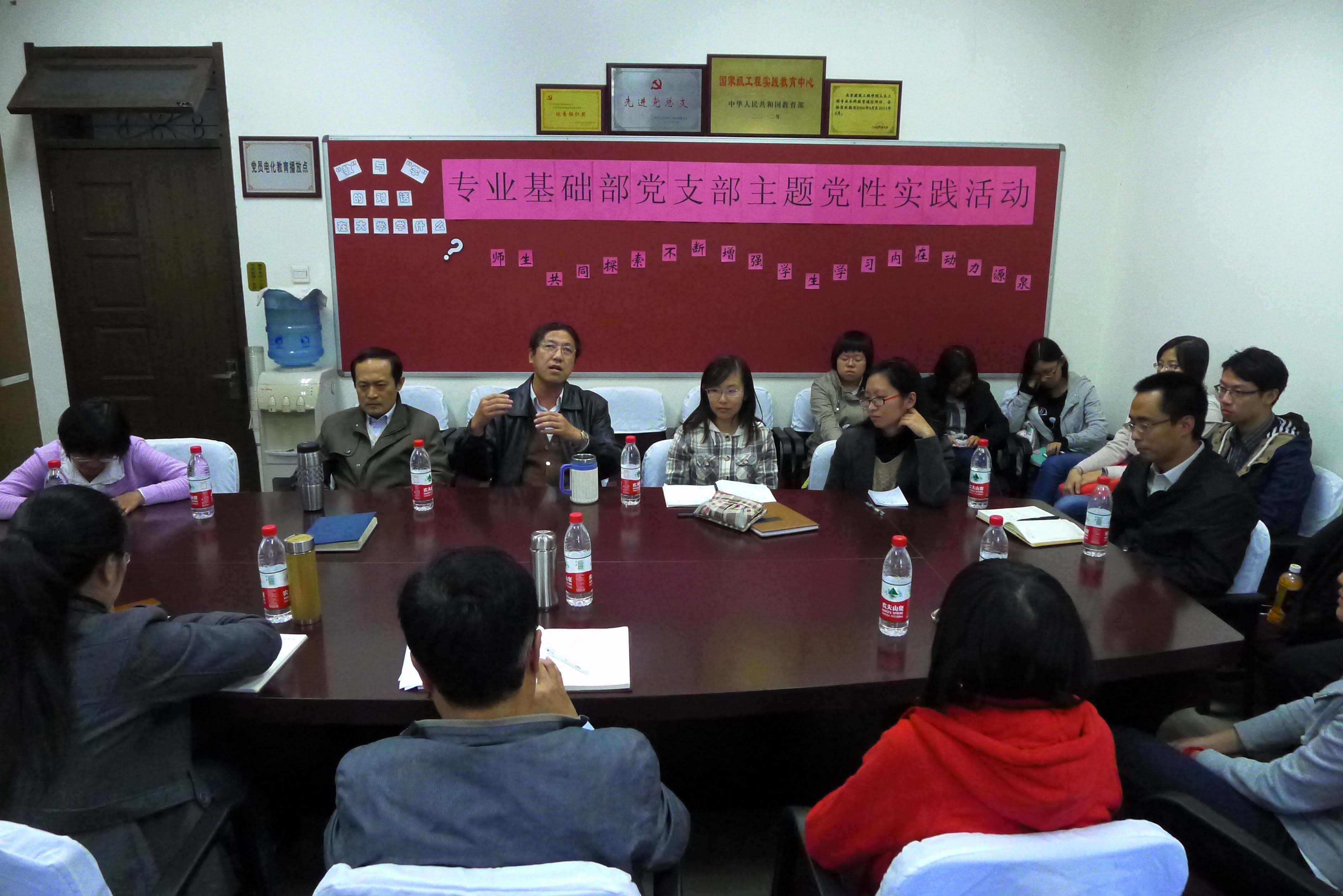 太阳成集团tyc7111cc专业基础部党支部在结合前期党的群众路线教育实践活动相关学习的基础上,支部党员围绕“加强服务型党支部建设”这个中心,紧密结合党的群众路线教育实践活动,以“党建路桥工程”为载体,从教师与学生两个不同的角度,以服务学生、服务教学为落脚点,以不断改进教师的教风、促进学生的学风、不断提高中青年教师教学效果为目标,开展以“在大学学什么”为主题的“教”与“学” 对话活动,探索不断增强学生学习的内在动力与源泉。