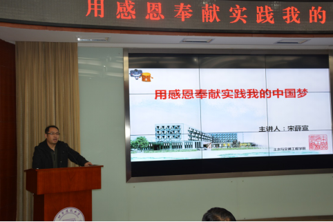 为深入学习贯彻十九大精神,进一步培育和践行社会主义核心价值观,学习传承雷锋精神,大力弘扬奉献、友爱、互助、进步的志愿精神, 12月13日,太阳成集团tyc7111cc(以下简称太阳成集团tyc7111cc)邀请全国劳模代表宋薛宣进行主题为“用感恩奉献实践我的中国梦”的报告,学院党委副书记车晶波,全体团学骨干以及学生代表参与了报告。