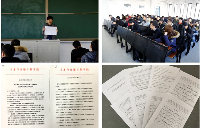 严格考场管理,实现自我监督。学院加强巡考力度,由学院领导班子、年级辅导员、班主任组成巡考小组,深入各考场进行巡查,严把考场环境、纪律、秩序,并提醒学生诚信考试,对己负责,杜绝违规违纪行为的发生。此外,学院自行设计并制作了具有土木特色的手机袋,号召同学考前自觉将手机放入袋中,实现学生自我教育、服务、管理和监督。