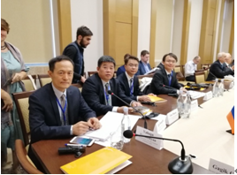 15日下午,代表团成员参加了会议闭幕式。亚美尼亚国立建筑大学校长Gagik Galstyan教授代表主办方对参会各代表团的到来、对于会议成功举办的支持表示了衷心的感谢。会议决定,下一届会议于明年在俄罗斯彼得堡国立建筑工程大学举行,并进行了会旗交接仪式。