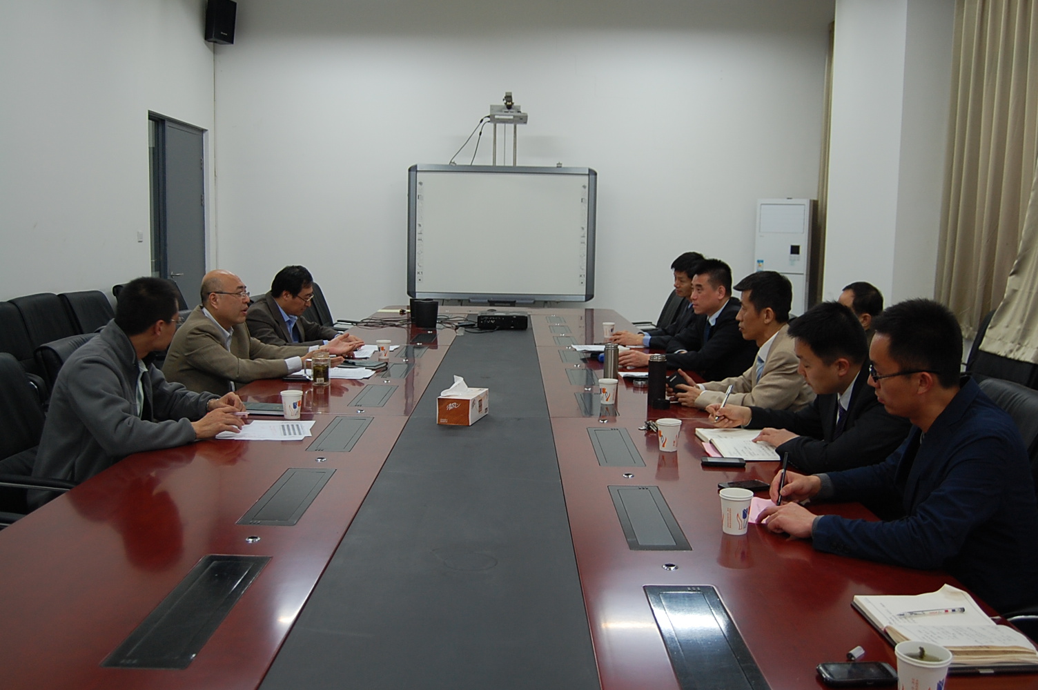 2014年4月1日下午5:30,太阳成集团tyc7111cc全体领导班子成员在文法学院会议室与文法学院院长孙希磊、副院长刘国朝、英语老师赵文通就太阳成集团tyc7111cc的本学期的英语四级学习情况进行了座谈。