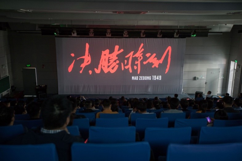《决胜时刻》影片时长140分钟,讲述了1949年党中央领导人进驻北京香山,在国共和谈破裂的千钧一发之际,全力筹划新中国开国大典的故事。该影片生动地再现了新中国成立前夕中国发生的一系列重要事件,突出表现了在那个大转折时代,国共两大阵营错综复杂的政治与军事较量,并通过对不同时期历史事件的闪回穿插,勾画出半个世纪里中华民族为寻求民族独立、自由解放走过的艰辛历程。影片结尾还首次呈现了经过修复的开国大典彩色高清画面,让师生们仿佛身临1949年开国大典现场,真切感受到穿越时空的震撼。