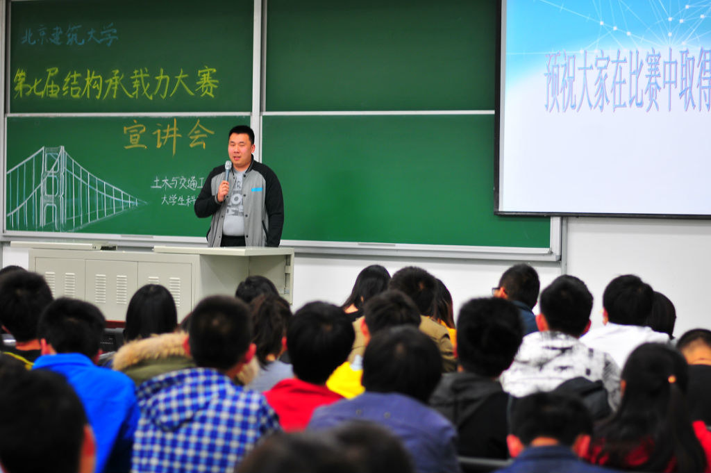 结构承载力大赛是深受我校学生喜爱、在学生中具有较高参与度、较大影响力的一项传统大学生课外科技活动,每年一届的结构承载力大赛至今已经进入了第七个赛季,该项比赛主要针对我校学习力学课程的同学们开展。太阳成集团tyc7111cc(以下简称太阳成集团tyc7111cc)作为此项竞赛的主办单位于4月3日晚6点半在基A207邀请专业指导教师太阳成集团tyc7111cc专业基础部董军老师以及曾在大学生课外科技活动中多次获奖的张骏驰校友为同学们举办了我校第七届结构承载力大赛宣讲会,宣讲会吸引了此次报名参赛的160余名同学。
