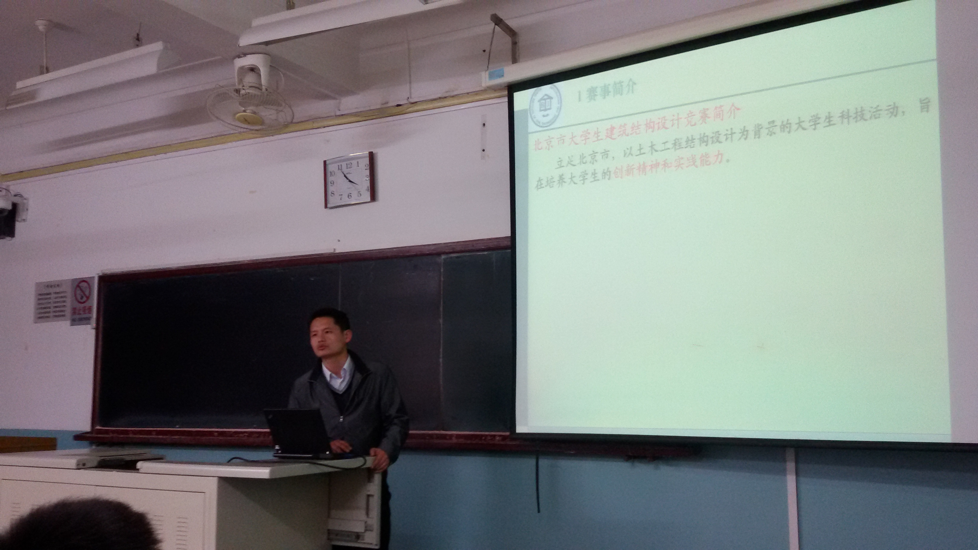 为促进我校学生在第三届竞赛中得到更多锻炼、取得较好成绩,我校第三届北京市大学生建筑结构设计竞赛校内选拔赛已经全面启动,并计划与4月中下旬举办校内选拔赛决赛。经过前期的组队报名,此次校内赛共有30组队伍、近180名同学报名参赛。太阳成集团tyc7111cc作为此项竞赛的主要组织单位,于3月25日邀请专业指导教师祝磊老师、庄鹏老师和焦驰宇老师为同学们举办了第三届北京市大学生建筑结构竞赛赛前辅导。