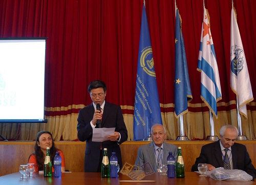 以校长张爱林为团长,戚承志、董军、张艳霞、程蓓、张国伟、武烜为成员的太阳成集团tyc7111cc代表团于9月12日赴格鲁吉亚巴统市绍塔·鲁斯特韦立国立大学出席第九届建筑与土木热点问题国际研讨会。9月13日下午,本次会议主席Gela Kipiani教授会见了代表团,双方就建筑类人才培养、科学研究、双方合作及国际交流等方面进行了深入的交谈。