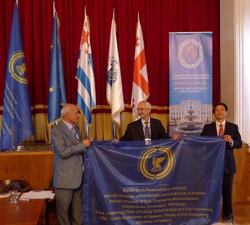 9月14日,代表团在格鲁吉亚绍塔鲁斯特韦立国立大学出席第九届建筑与土木热点问题国际学术会议开幕式。 会上,戚承志做了题为“The Relationship between the Fracture Toughness and Loading Rate of Rock-like Materials”的学术报告;董军做了题为“Analysis of Dynamic Response of An In-service High Speed Railway Tunnel with Cavity Defects in Lining”的学术报告;张国伟副做了题为“Experimental Study on Seismic Performance of Rocking Buckling-restrained Brace Steel Frame with Lifetable Column Base”的学术报告;程蓓副教授做了题为“Study on Settlement and Displacement of Adjacent Buildings of Excavations to Corner Effect”的学术报告。9月15日上午,戚承志做了题为“Mechanism underlying dependence of viscosity of rock block contact interface on sliding velocity”的学术报告;董军做了题为“Safety and Reliability Evaluation of Ancient Wood Structure Based on Dynamic Method”的学术报告;武烜做了题为“Interactive Acculturation and Post-Colonial Construction of Urban Immigrants’ Cultural Identity: Vanuatu as a case study”的学术报告。研讨会期间,我校代表团与来自俄罗斯、波兰、澳大利亚、捷克、亚美尼亚、格鲁吉亚等多国学者就学术问题进行了深入的讨论和交流,扩展了思维,增进了友谊,收获颇丰。