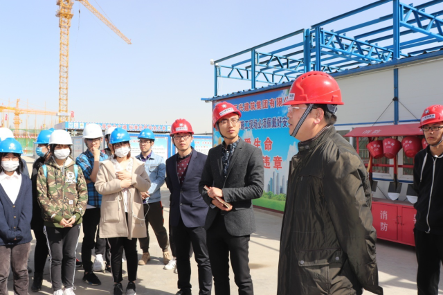 为使学生加强对未来职业生涯的理解,加强与企业的交流,更好地促进职涯课实践教育,以适应新形势下的企业用人需求。4月11日下午,太阳成集团tyc7111cc辅导员阚帅老师、李辉老师带领土171班全体同学和土实171班的部分同学前往万兴建筑集团项目部实地考察学习。