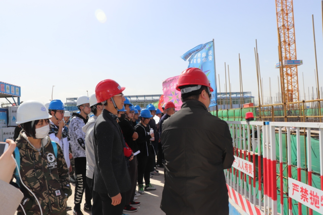 随后同学们在安全主任的带领下参观了施工现场:大型机械的稳定操控、施工队员的默契配合、现场规划的严密精准极富视觉冲击力。同时严格的安全管理流程和有条不紊的工地秩序也深深震撼了参观同学。