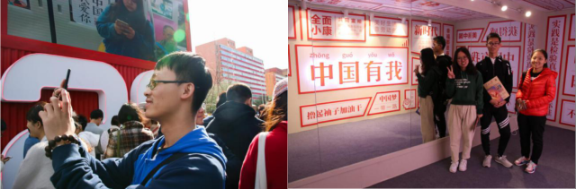 在五大展馆内,师生们参与了9大创意互动活动与展示:时光杂货铺展出的儿时物件,勾起了大家的童年回忆;在声音博物馆听过去的声音,并录下对祖国的美好祝愿;在年代照相馆留下最青春活力的照片,纪念逝去的旧时光和憧憬未来的新生活。