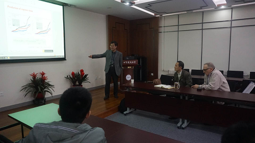 卢春生教授通过提出了一个简单的幂率函数模型,去解释了自然界中不同事物在不同尺度范围内的发生都近似符合一个幂率函数关系,比如,岩石内部损伤的变化,地震次数与时间关系,动物大小与生存年代关系等等。为什么这么多事物的发生都存在同一种幂率函数关系,卢教授说在这其中也许存在一个我们现在还无法解释的谜题。讲座结束后,卢春生教授和听取讲座的师生进行了交流,详细地回答了老师和研究生提出的各种问题。虽然卢教授讲座内容与广大研究生专业研究方向有些不同,但是卢教授的讲座为广大老师和研究生对于科学研究思路的选取与优化提供了一个非常有用的帮助。出席讲座的老师和同学讲座结束后,都表示在科研思路方面启发很大