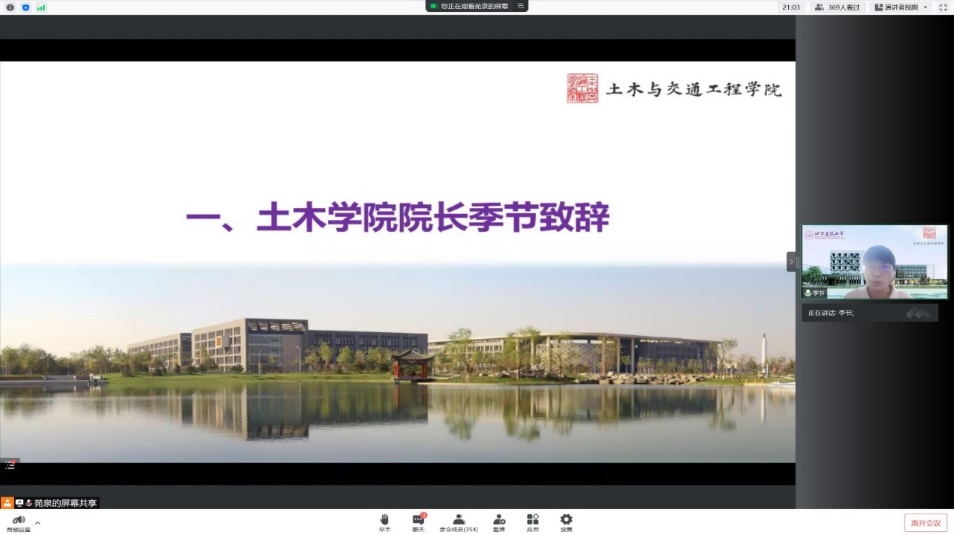 新生班主任代表李崇智老师风趣幽默的欢迎新生的到来,他从如何认识专业,如何开始大学生活等方面寄语新生,并期待同学们扬帆起航,成就最美的人生;优秀学生代表土实212班王伊蕾同学以“三个问题”为引,结合自身经历向新生传授经验;新生代表地下221班郑宏扬同学号召新生把握好手中的接力棒,积极融入新生活,在北建大成就更好的自己。