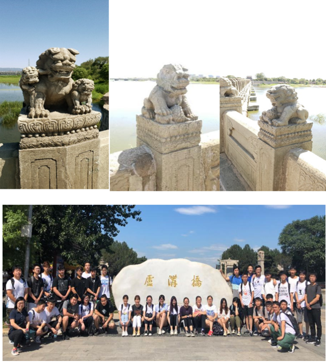 7月1日前往参观卢沟桥,王毅娟老师为大家介绍了卢沟桥的桥体结构与建筑历史,重点介绍了卢沟桥是北京现存的最古老的石造桥,共有十一跨。其桥墩的迎水面又被称为“斩龙剑”,呈尖锐状,有较强的流线型,在疏水破冰方面起到巨大作用。桥柱上的石狮子也是闻名遐迩,共有501座,古有乾隆皇帝数错三次数目的笑谈,可见卢沟桥石狮数量之多。其次从石狮身上不难看出各个朝代的工艺水平和文化精神,所以古建筑又被称作历史界的活化石。
