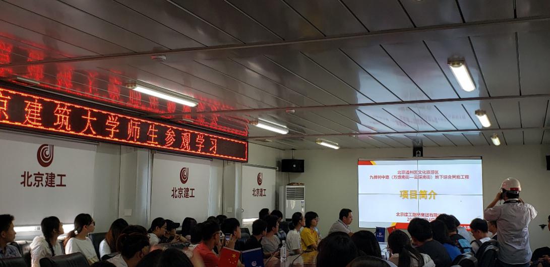 7月4日学院组织学生前往通州区梨园北京建工路桥集团项目部参观地下综合管廊工程。首先项目负责人进行项目讲解,介绍了九棵树地下综合管廊工程的项目概况,分享了关于桥梁建设与地下管廊工程中所用到的技术和相关知识,为同学们接下来去到施工现场参观学习奠定了知识基础。随后,同学们参观了通州文化旅游区地下综合管廊工程的施工现场。在管廊的施工现场,同学们可以很清楚的了解到管廊的实际结构和施工过程。管廊分为四舱结构与五舱结构,五舱式分为电力舱两舱、水信舱、热力舱、燃气舱,采用管廊结构方便了管理与日后的维修。