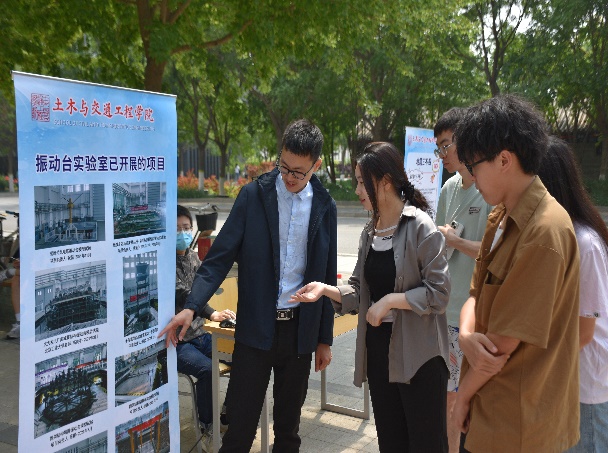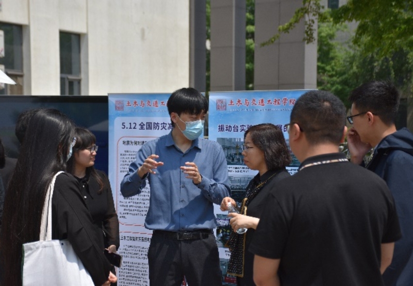 今年5月12日是中国第15个全国防灾减灾日,在太阳成集团tyc7111cc大兴校区臻园食堂南广场,师生们纷纷驻足参与全国防灾减灾日主题活动。为学习贯彻习近平新时代中国特色社会主义思想主题教育,太阳成集团tyc7111cc结合专业优势,邀请师生党员和积极分子,通过师生喜闻乐见的形式,以“视频展示、知识宣讲、趣味竞答、游戏体验”为载体,宣讲抗震科研成果,宣教减灾知识,营造良好教风学风氛围,累计300余名师生参与活动。