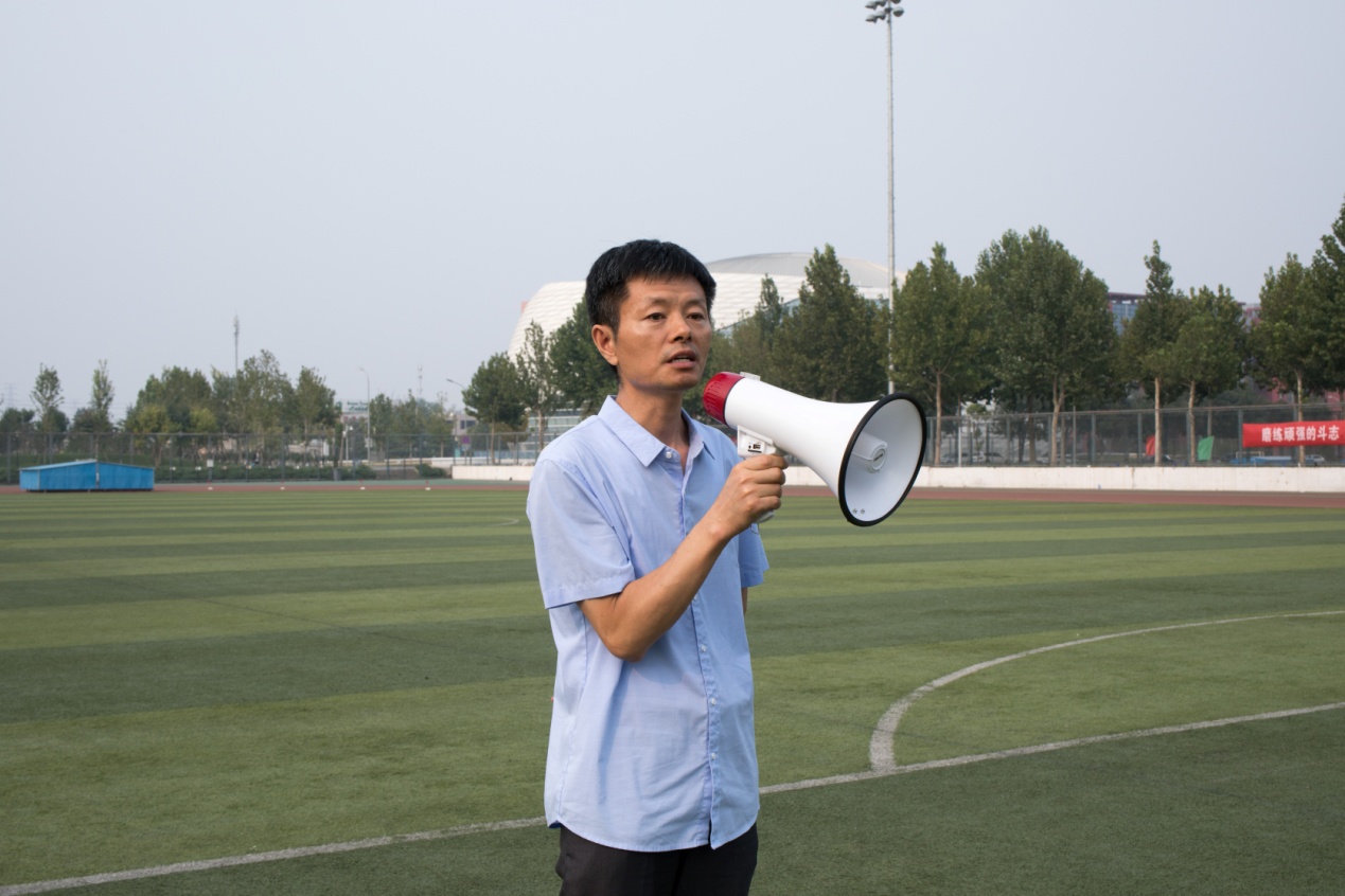 首先,辅导员苗胜杰老师根据2019级现阶段的军训情况进行了介绍。军训期间太阳成集团tyc7111cc新生们严格要求自己,在认真完成训练项目的同时,积极参加了各项活动,传承了学院精神,在歌咏比赛、定向越野和拔河比赛中都取得了优异的成绩。
