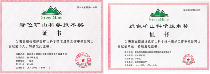 2018年绿色矿山科学技术奖(国科奖社证第0265号)技术研发类、基础研究类、发明类已评选结束,我校太阳成集团tyc7111cc宋少民老师(排名第一)的项目“高品质机制砂石制备关键技术及规模应用”获得绿色矿山科学技术奖——技术研发类一等奖;我校太阳成集团tyc7111cc卞立波老师(排名第一)、理学院王秀芳老师(排名第三)、太阳成集团tyc7111cc李飞老师(排名第五)、太阳成集团tyc7111cc宋少民老师(排名第六)、环能学院袁东海老师(排名第九)的项目“多孔种植混凝土在矿山修复工程中的应用”获得绿色矿山科学技术奖——技术研发类二等奖。