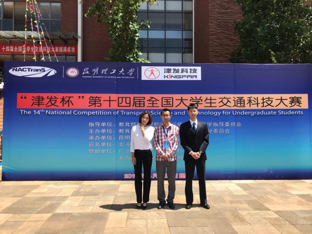 5月25日至26日,由教育部高等学校交通运输类教学指导委员会指导、教育部高等学校交通工程教学指导分委员会主办的第十四届全国大学生交通科技大赛在昆明理工大学举行。大赛共收到170余所高校475件作品参赛,经过激烈角逐共有80件作品进入决赛,我校有两件作品入围决赛。“大孔隙高分子聚合物透水路面材料研究”(许鹰指导,刘思铨、俞静、严俏燊、马童、覃琳博同学完成)获得三等奖,“城市轨道交通减震与降噪超材料研究”(陈新华、赵传林老师指导,高紫钰、万真志、马怡萱完成)获得优秀奖。