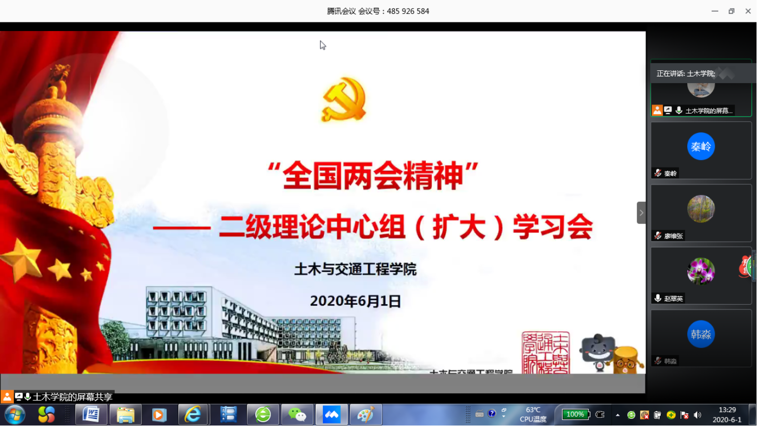 6月1日,太阳成集团tyc7111cc以在线形式召开二级理论中心组(扩大)学习会,学习“全国两会精神”和习近平在中央政治局第二十次集体学习时的重要讲话精神,学院全体党委委员、科级干部参加学习会,会议由党委书记冯宏岳主持。
