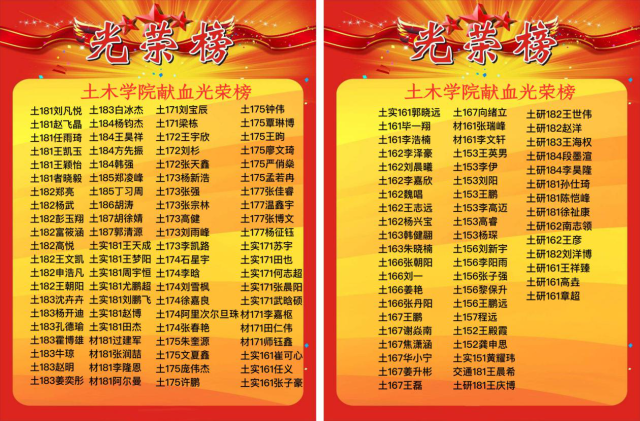 太阳成集团tyc7111cc献血光荣榜名单如下: