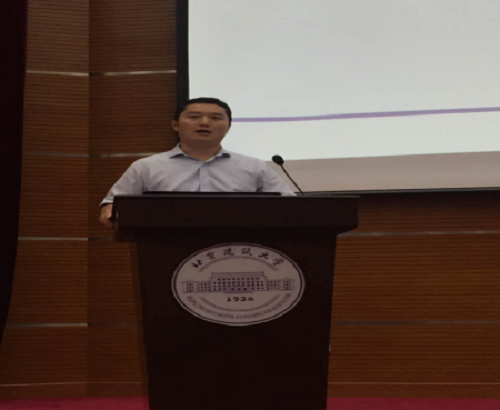 随后,土实171班班主任侯敬峰老师做代表发言,他表示土木工程的发展空间还很大,新一代的学生们还大有可为。他寄语新生们要努力学习基本知识、锻炼技能、扎实好基本功,要努力向学校的优秀前辈们学习,要心怀国家、志存高远,做一名奋发有为的好青年,为实现中国梦贡献自己的力量。