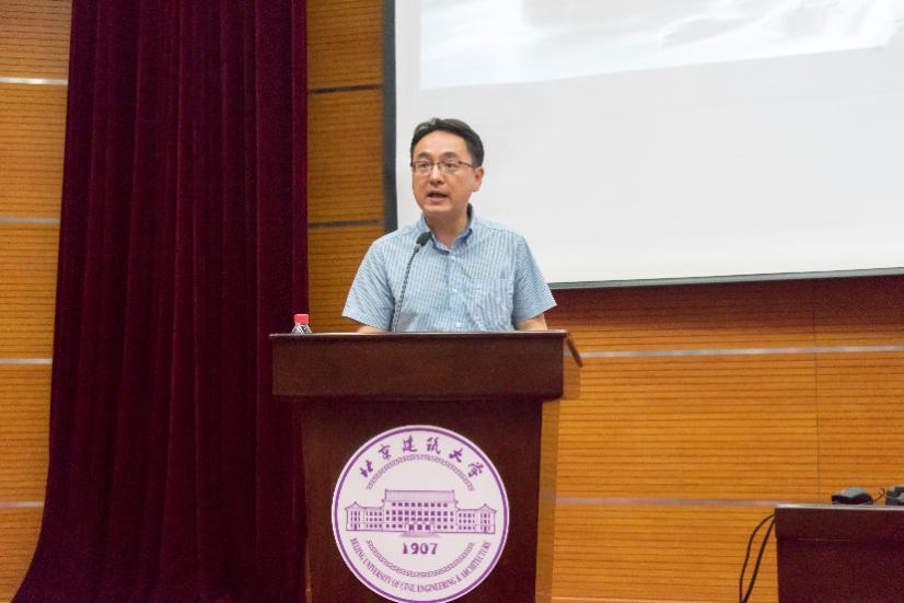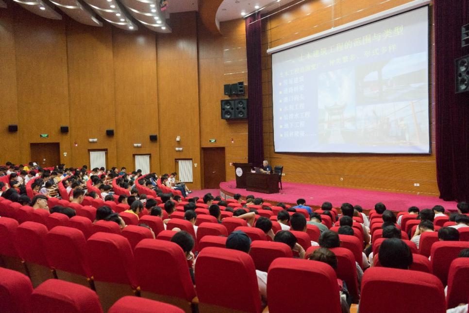 王锐英教授首先就土木建筑工程的范围和类型进行了讲解,他运用大量图片及详实资料,带领大家探寻和欣赏工程美学。他讲到土木工程范围宽广、种类繁多、形式多样,而 “术业有专攻”,土木专业的同学需要注重围绕所学方向进行系统而细致的学习,提早进行自身规划并且广泛涉猎,不断完善自己的知识能力结构。王锐英教授还讲到:“建筑是文化的载体与符号。”他介绍了历届北京十大建筑,深入浅出地讲述了一方天地中的生活艺术、民俗和文化,以及蕴含在建筑形式里的深刻文化内涵。最后,王锐英以长诗作为结束语,结合建筑起源与特征,探寻天地大格局下的生命哲学。