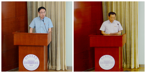 接下来的环节中,优秀学生党员代表发言,总结基层党建工作并回顾大学的成长历程。先进党支部代表防灾减灾工程研究生党支部书记韩嘉兴在发言中提出,通过建设学习型、实践型、服务型和科研型党支部,树立清风正气,营造优良学习生态。优秀学生党员李杉杉从学生党员和学生干部做好模范带头作用谈起,做好学风院风班风的引导,敢于说话、敢于做事。优秀学生党员卢嘉茗说到,本科四年是丰富多彩,机遇与挑战并存,选择与坚持并存,面对迷茫和困惑,应该坚持梦想、脚踏实地,为自己和建大的未来,砥砺前行。