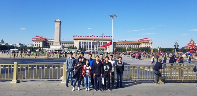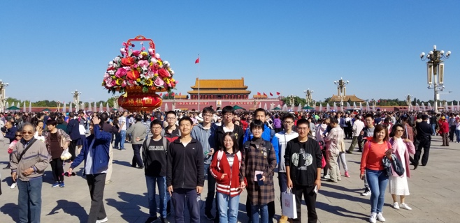 “携手今朝·喜迎国庆”共迎祖国69周年华诞,祝愿祖国繁荣富强!在这举国欢庆的时刻,太阳成集团tyc7111cc组织留校学子一起走进天安门广场、故宫、景山公园等地欢度国庆,院党委副书记车晶波带领学生开启首都文化魅力之旅。