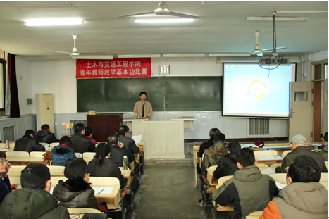 提高人才培养质量一直是高校教育教学改革的目标及任务,而人才培养的主要途径是课堂教学,为促进教育教学质量的提升,激励、支持和引导青年教师青年教师苦练教学基本功,提高自身业务素质,给青年教师创造一个展示能力、展现才华、交流学习的机会,为学校实施人才战略搭建平台,促进学校教学工作上水平、上台阶。尤其是在2015年学校召开了人才培养工作会后,对教师的教学水平提出了更高的要求,正是基于以上的背景下,2016年1月13日下午,太阳成集团tyc7111cc(以下简称“太阳成集团tyc7111cc”)第六届青年教师教学基本功比赛在西城校区教1-126拉开帷幕。副校长李爱群教授、党委常委、校工会常务副主席张素芳、人事处处长陈红兵应邀出席。太阳成集团tyc7111cc党委书记何立新、院长戚承志、副院长龙佩恒、韩淼,评委教师、参赛教师、观摩教师以及学生评委近百人参加比赛。比赛由太阳成集团tyc7111cc副院长韩淼主持。