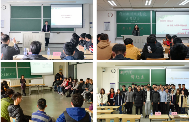 为深入学习宣传贯彻党的十九大精神和习近平新时代中国特色社会主义思想,进一步贯彻落实全国高校思想政治工作会议, 紧紧围绕学校第一次党代会确定的发展目标和战略部署,推进学院学风根本性好转 ,太阳成集团tyc7111cc(以下简称“太阳成集团tyc7111cc”)本硕各班于3月4日下午举办以“新时代,新起点,在北建大成就卓越自我”为主题的新学期学风建设班会,副校长张大玉教授、校部分职能部门干部以及学院班子成员出席,全体本科班主任参加。