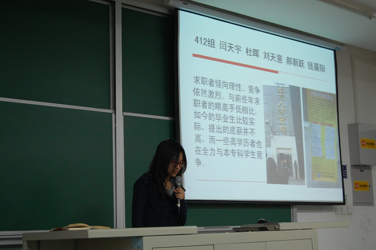 土124班团支部由学习委员直观得向同学们展示另外本班同学的弱势学科,也对本班后进同学进行了具体分析。为了更好得使同学们学习,提出了“上课交手机”的建设性方案。随后结合寒假社会认知实践活动——直击人才市场进行小组汇报,总结了三点企业招聘我们所学专业的必要条件:1、名校毕业,2、高学历,3、较强的综合能力,其中综合能力包括外语能力、软件使用能力、心理能力和实习经历。