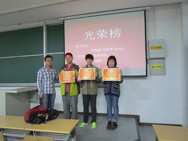 6.刘国朝老师和班级导师索智为土126班同学发奖