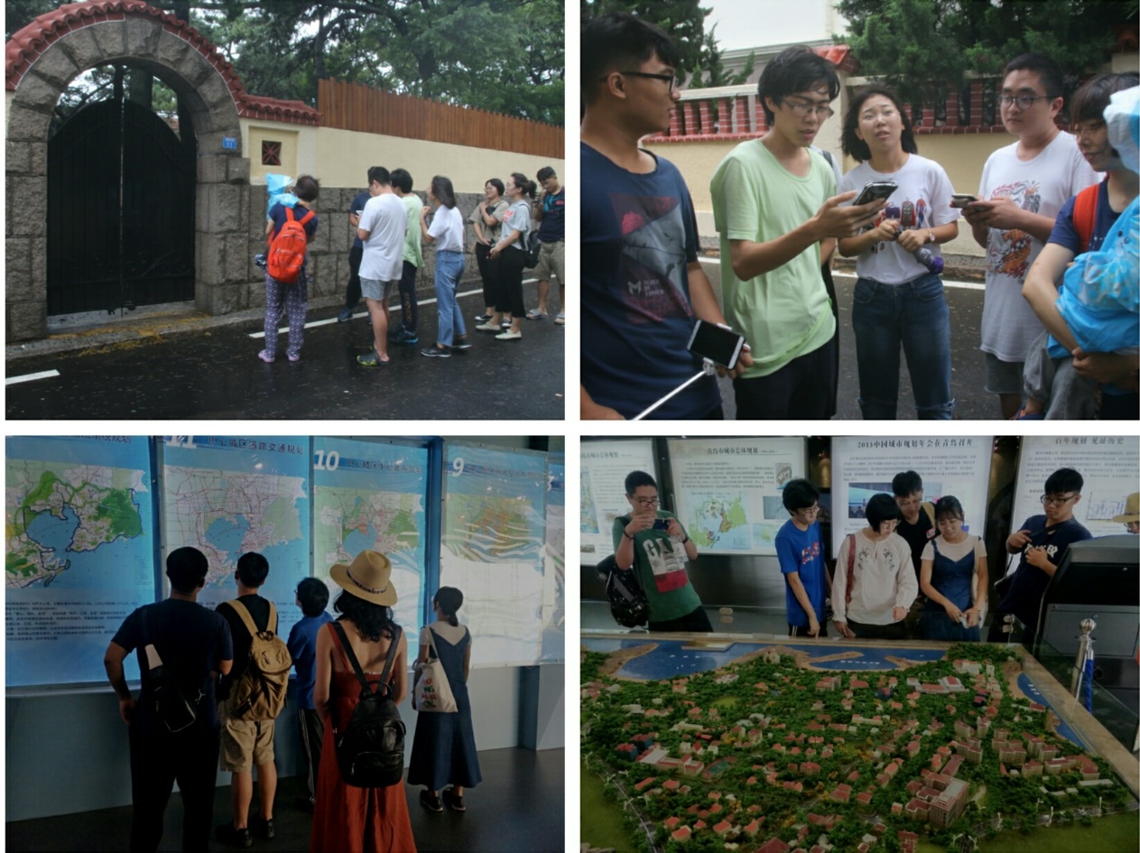 在本次实践的前期,实践团在青岛的老城区开展活动。结合本专业知识与高校交流,进行红色教育。实践团先后来到了太平山南麓建筑群、青岛理工大学、青岛市规划展览馆等地进行参观学习。