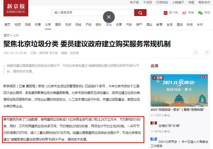 新京报:聚焦北京垃圾分类 委员建议政府建立购买服务常规机制