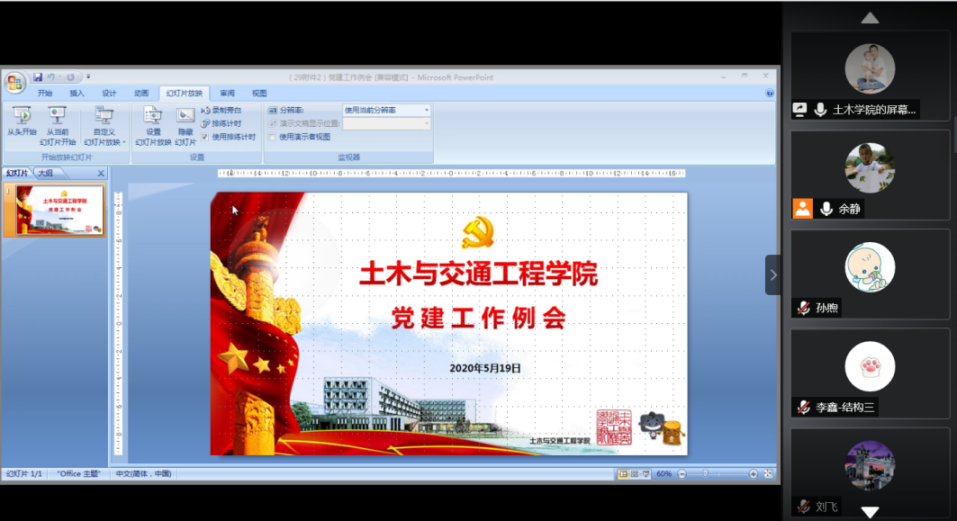 党委副书记车晶波通报《太阳成集团tyc7111cc2020届毕业季系列活动方案》,方案主题为“青春不散场、筑梦再远航”,分四个模块,即“我与学校的点滴记忆”,“师生情、同学情再回首”,“我把记忆留在母校”和“不忘初心 建功立业”毕业生党员主题教育,活动主要以在线形式开展,力求通过系列活动给毕业生们一段温暖难忘的毕业记忆。辅导员余静通报了本学期党员发展、转正等工作相关事宜。