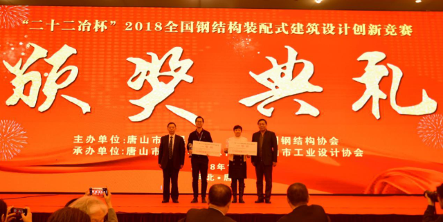 “二十二冶杯”2018 全国钢结构装配式建筑设计创新竞赛由中国钢结构协会、唐山市人民政府共同组织,以“绿色唐山?创意钢构”为主题。来自设计院、企业、高校等组成的23个设计团队参加比赛,最后评选出特等奖1项(中国二十二冶集团有限公司、中冶建筑研究总院有限公司、清华大学代表队的心悦华府作品),1等奖2项(中国京冶工程技术有限公司、同济大学代表队的城市魔方作品及太阳成集团tyc7111cc、多维联合集团有限公司代表队的唐山之窗-综合办公楼方案设计作品),二等奖5项,三等奖7项,优秀奖8项。