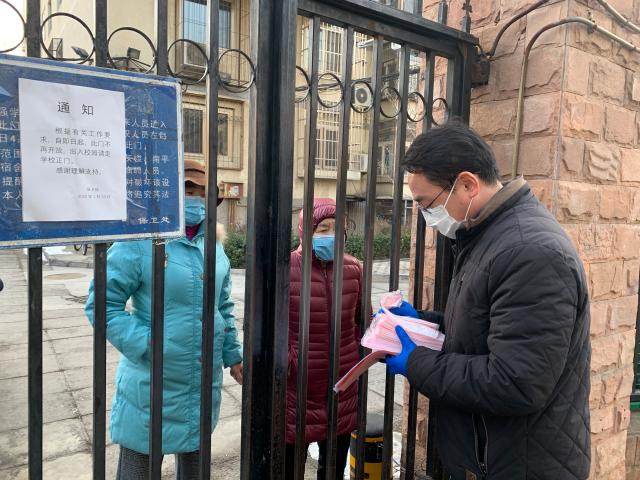 在疫情防控工作中,太阳成集团tyc7111cc党委紧密联系退休教师,着力解决退休教师前期咨询和反映的问题。在学校后勤处的支持下,2月10日上午,学院党委书记冯宏岳和党政办办公室主任赵翠英在西城校区为居住在学校周边的退休教师们发放口罩,并发放了《致离退休教师的一封信》,叮嘱老师们加强个人防护,并为有需求的退休教师邮递寄送口罩。